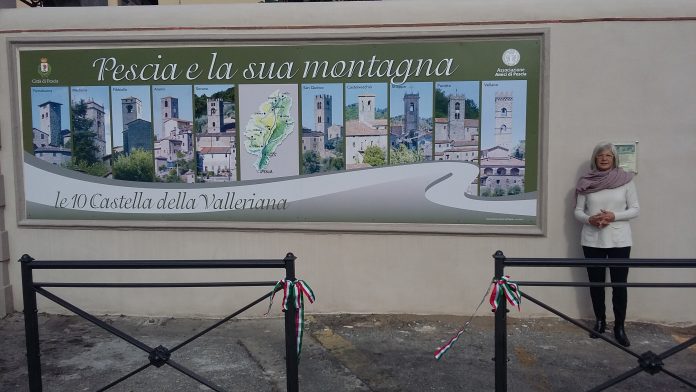 E’ inaugurato lo spazio pubblicitario posto in piazza XX Settembre, angolo via Roma. Si tratta di un’opera ideata e realizzata dall’associazione “Amici di Pescia” (nella foto il presidente Carla Papini), approvata dai condomini proprietari del Palazzo Magnani, dalla Soprintendenza ai Beni