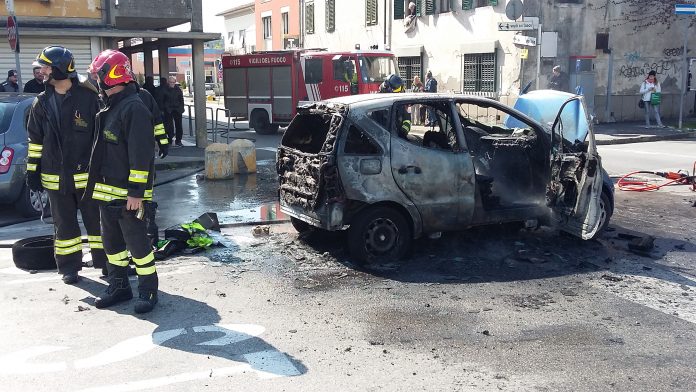 Solo la prontezza del conducente ha evitato una possibile tragedia. Stamani intorno alle 11:00 nei pressi del Vecchio Mercato dei Fiori di via Amendola una vettura in movimento ha preso improvvisamente fuoco. Il conducente si è accorto che qualcosa non andava. Ha notato le fiamme ed ha immediatamente allertato i vigili del fuoco. Di lì a pochi minuti l’auto si è quasi carbonizzata ma l’intervento dei pompieri ha evitato il peggio. Sul posto sono intervenuti i carabinieri del locale comando e gli agenti di Polizia Municipale.