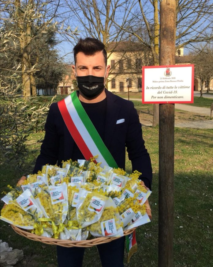 MILLECINQUANTA mazzetti di mimosa del Mercato dei Fiori di Pescia sono state consegnate nelle mani di Dante Sguazzi, sindaco di Maleo, paese di poco oltre 3000 abitanti, poco distante da Codogno.