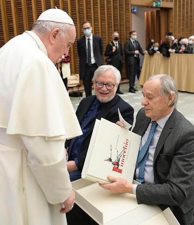 Il presidente della Fondazione Nazionale Carlo Collodi, Pier Francesco Bernacchi, e l’artista Antonio Nocera hanno donato a papa Francesco una rara edizione de Le Avventure di Pinocchio, curata e illustrata dal pittore e scultore.