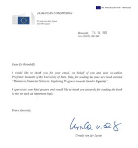 Il libro scritto dalla pesciatina Giuliana Birindelli (Università di Chieti-Pescara) e Antonia Patrizia Iannuzzi (Università di Bari) è “an important topic” per la von der Leyen che ha scritto una lettera di ringraziamento alla Birindelli.