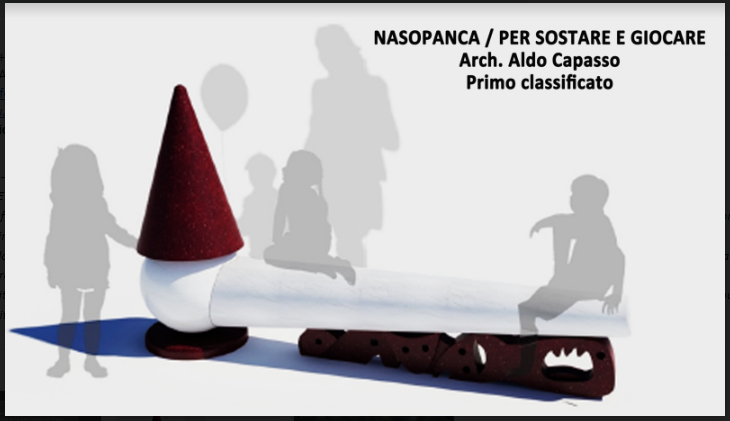 La giuria – presieduta da Pier Francesco Bernacchi, presidente della Fondazione Nazionale Carlo Collodi e composta da Sara Vannucci, presidente dell’Associazione Nazionale Le Donne del Marmo; Antonella Di Biase, titolare della Di Biase Marmi; Loredana Lignola, membro del Comitato Tecnico-Scientifico della Fondazione Nazionale Carlo Collodi e da Daniele Narducci, dirigente della Fondazione, ha assegnato il primo premio all’architetto Aldo Capasso. Titolo dell’opera: Naso panca / per sostare e giocare.