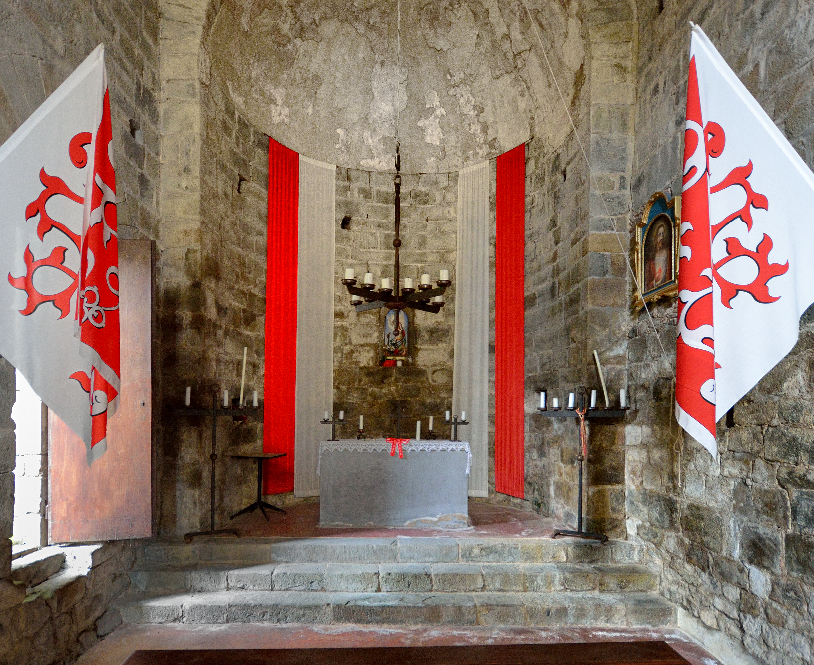 La chiesetta conserva l’originario romanico, un’unica navata suddivisa in due campate. L’interno è spoglio, è stato restaurato nei primi anni 2000 dal Rione Santa Maria. Nella piccola abside, si possono decifrare i resti di un affresco della fine del XV sec raffigurante san Bernardino da Siena.