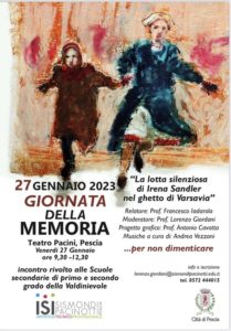 ‘La lotta silenziosa di Irena Sandler nel ghetto di Varsavia’: una giornata di riflessione guidato da alcuni professori dell’ISI, Istituto Sismondi Pacinotti, patrocinato dal Comune di Pescia.