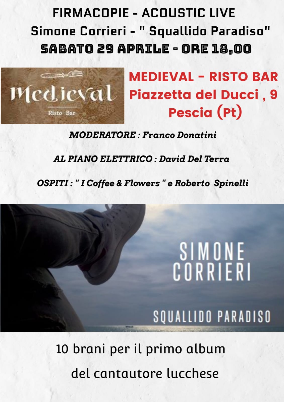 Simone Corrieri sarà a Pescia per un firma-copie, sabato 29 aprile alle 18, presso il ristopub Medieval in piazzetta del Ducci, 9.