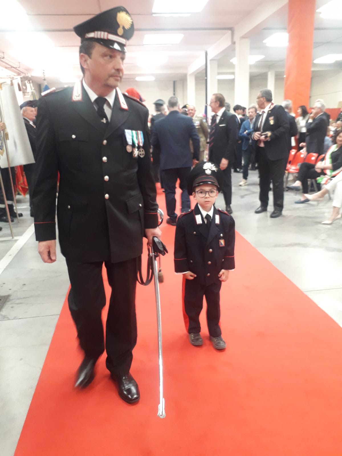 Filippo, 5 anni, figlio del comandante della stazione dei Carabinieri di Pescia Francesco Marraccini, era vestito in uniforme dei Carabinieri, che, ha già deciso, passerà al fratellino Matteo appena sarà più grande.