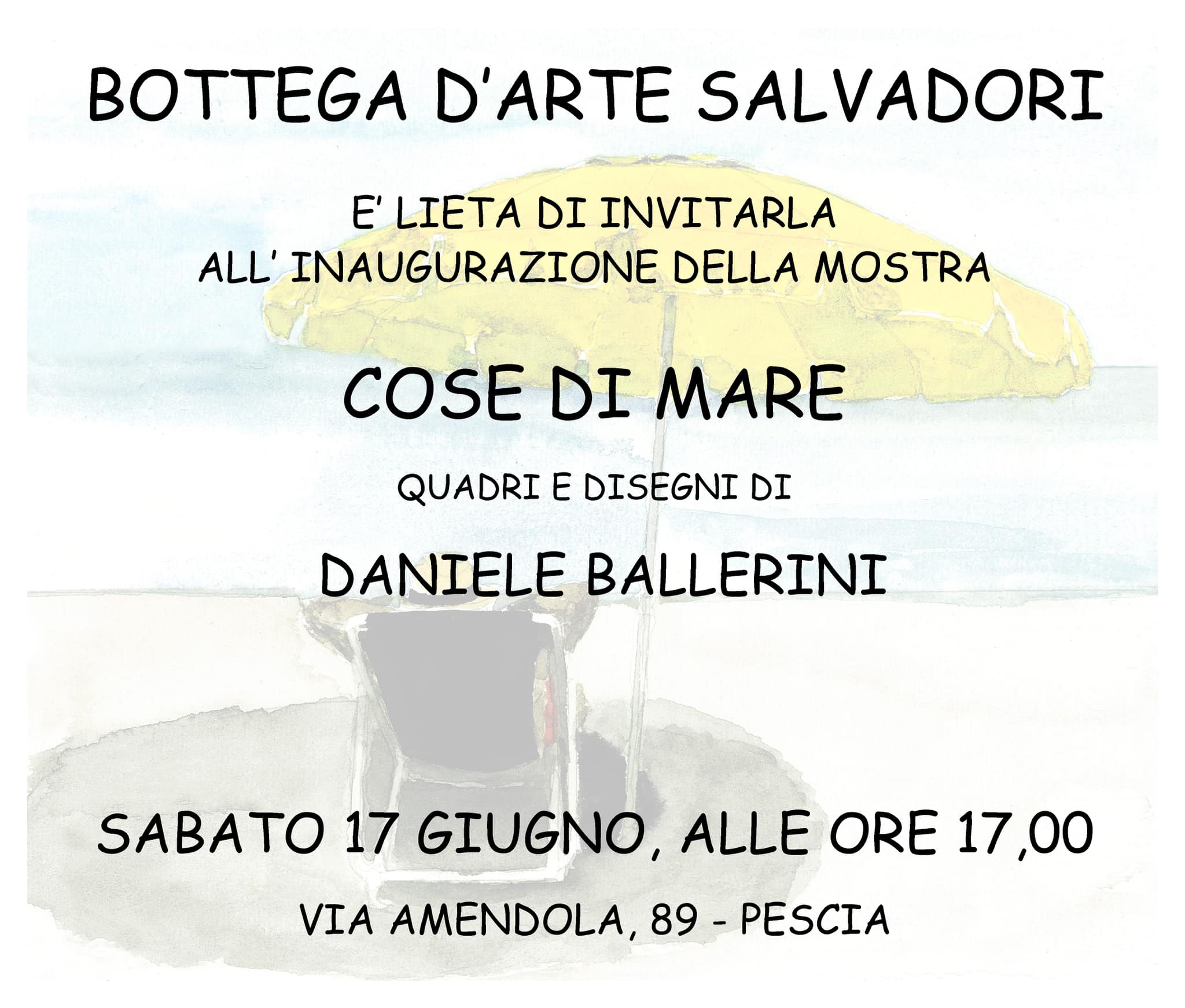 Dopo due anni di assenza per l’emergenza epidemiologica, tornano le mostre alla Bottega d’arte Salvadori. Cose di Mare di Daniele Bettarini, ovvero una collezione di opere composta di dipinti acrilici ed acquerelli, con il denominatore comune del mare.