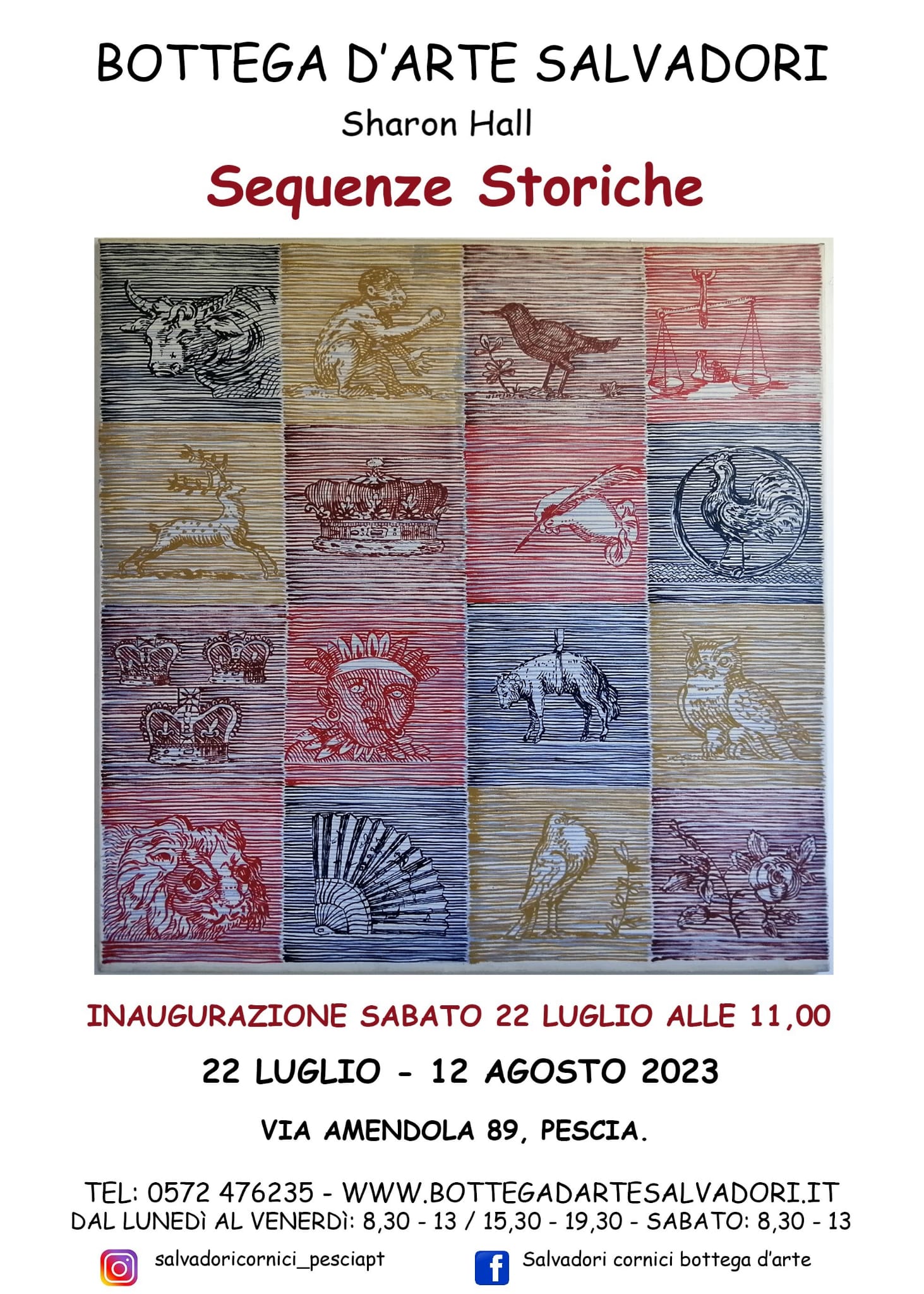Sharon nel corso degli anni è diventata un importante e riconosciuta astrattista, ma per questa esibizione ha deciso di proporre dei lavori realizzati a cavallo fra gli anni 80 e 90, mai visti in Italia, ma fondamentali nel suo percorso di crescita artistica. “Sequenze storiche”, questo il titolo, è una rivisitazione e rielaborazione concettuale di immagini tratte da vecchi libri e cataloghi, lo scorrere del tempo nelle sue varie accezioni storiche, fisiche e filosofiche è il protagonista delle opere in esposizione che sapranno sicuramente catturare l’attenzione dei visitatori.