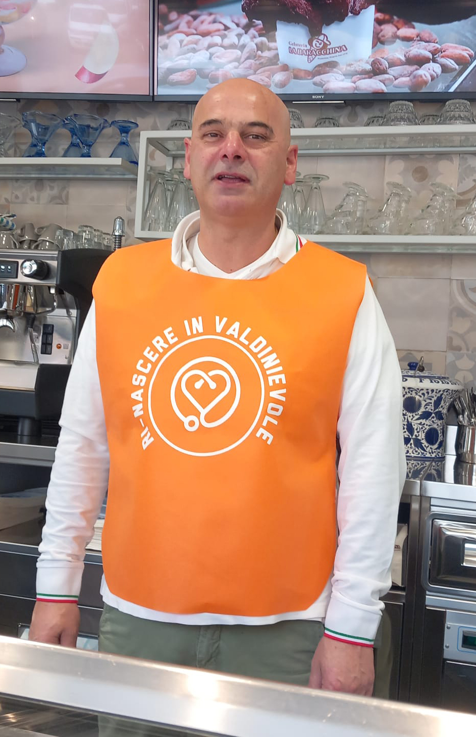 Sono tantissimi i commercianti che non potendo partecipare personalmente al girotondo, hanno già indossato la canotta arancione come quella nelle foto e la terranno indosso per tutto il pomeriggio di sabato.