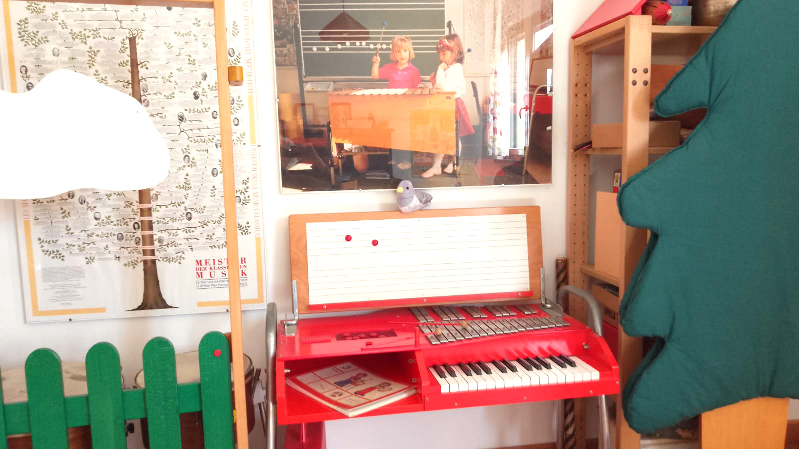 Chi entra nella scuola di musica Dolce Mozart (specializzata per bambini dall’età prenatale ai 14 anni) nota subito una serie di strumenti ben visibili, come un pianoforte e un pianofortino etc, e quasi tutto lo strumentario Orff (colonna portante della pedagogia musicale del compositore tedesco, insieme alla voce e al movimento).