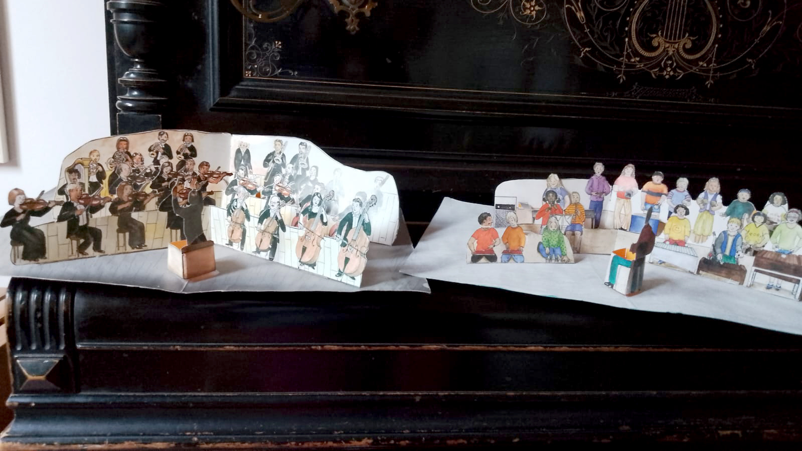 Ma da Dolce Mozart c’è anche una quantità di strumenti celati in scatole e cassetti, e inoltre altri se ne trovano disegnati su poster, carte da gioco etc.