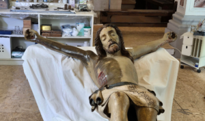 IL RESTAURO DEL CROCIFISSO Il crocifisso è in fase di ultimazione di restauro. L’opera è attribuita ad Andrea Pisano e risale al XIV secolo. Il crocifisso è situato nella Chiesa di Santa Maria Maddalena a Pescia ed è realizzato in legno intagliato e dipinto, si presenta collocato su una croce arricchita dalla presenza del cartiglio, dalla corona di spine e da una aureola. LA STORIA E LE FOTO DEL CROCIFISSO
