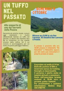 Alla scoperta di uno del torrenti del fiume Pescia passando da antiche strade e mulini abbandonati l’escursione, con guida Romima Biagi, farà un tuffo nel passato. Si incrocerà un misterioso rio che scende sinuoso dalla collina il cui rumore ci accompagnerà per un tratto di questo paesaggio fiabesco.
