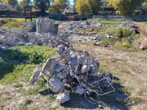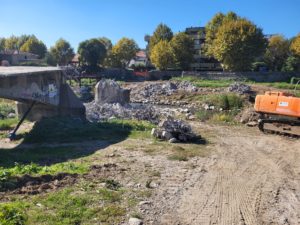 I lavoro procedono speditamente. E’ stato quasi completamente rimosso il piano stradale, manca da demolire un pilone. Entro la fine del mese, tempo permettendo, l’alveo del fiume potrebbe essere completamente liberato dalle macerie del cavalcavia.