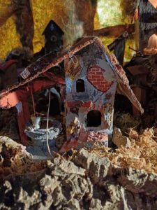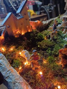 “I componenti del presepe, siano essi personaggi, piccole casette, fiumi, scale od altro, sono rigorosamente imperfetti -si schernisce Fabio-. Sono fatti per lo più da me, artigianalmente e sono destinati a familiari ed amici, specialmente bambini che abitano nelle vicinanze o che passano a piedi davanti alla bottega”.