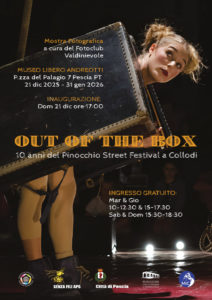 Domenica 21 dicembre 2025 alle 17 al Museo Andreotti di Pescia, alla presenza delle autorità cittadine, tra le quali il Sindaco Riccardo Franchi, del nuovo Consiglio Direttivo della Fondazione Nazionale Carlo Collodi, nonché dei vertici della Fondazione CARIPT, si inaugurerà la mostra fotografica e multimediale OUT OF THE BOX – 10 anni di Pinocchio Street Festival a Collodi.