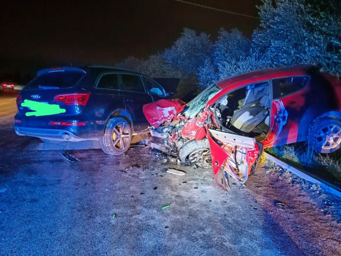 Due auto, che procedevano in direzione opposta, si sono scontrate frontalmente, quella su cui viaggiavano i tre giovani è rimbalzata oltre il guard-rail rimanendoci in bilico.