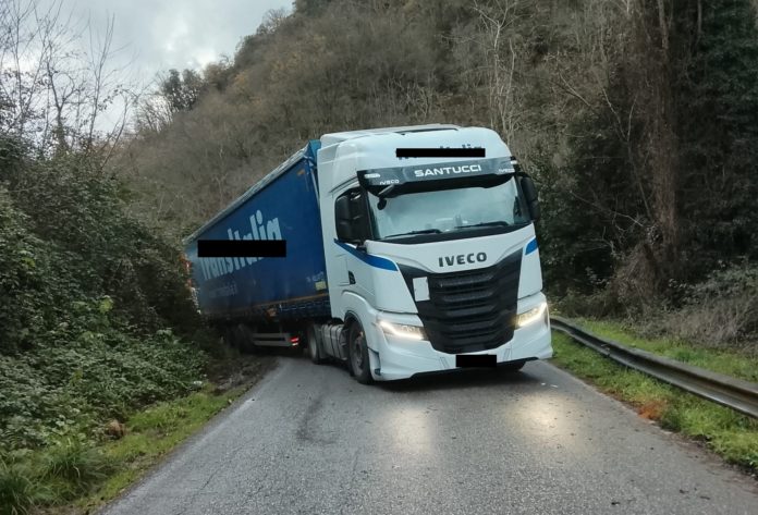 Viabilità nel caos a causa di un incidente stradale che ha visto coinvolto un grosso camion adibito al trasporto di carta. Stando al racconto di alcuni testimoni, il conducente ha perso il controllo del mezzo, sbandando e finendo con le ruote ai margini della carreggiata interrompendo la corsa.