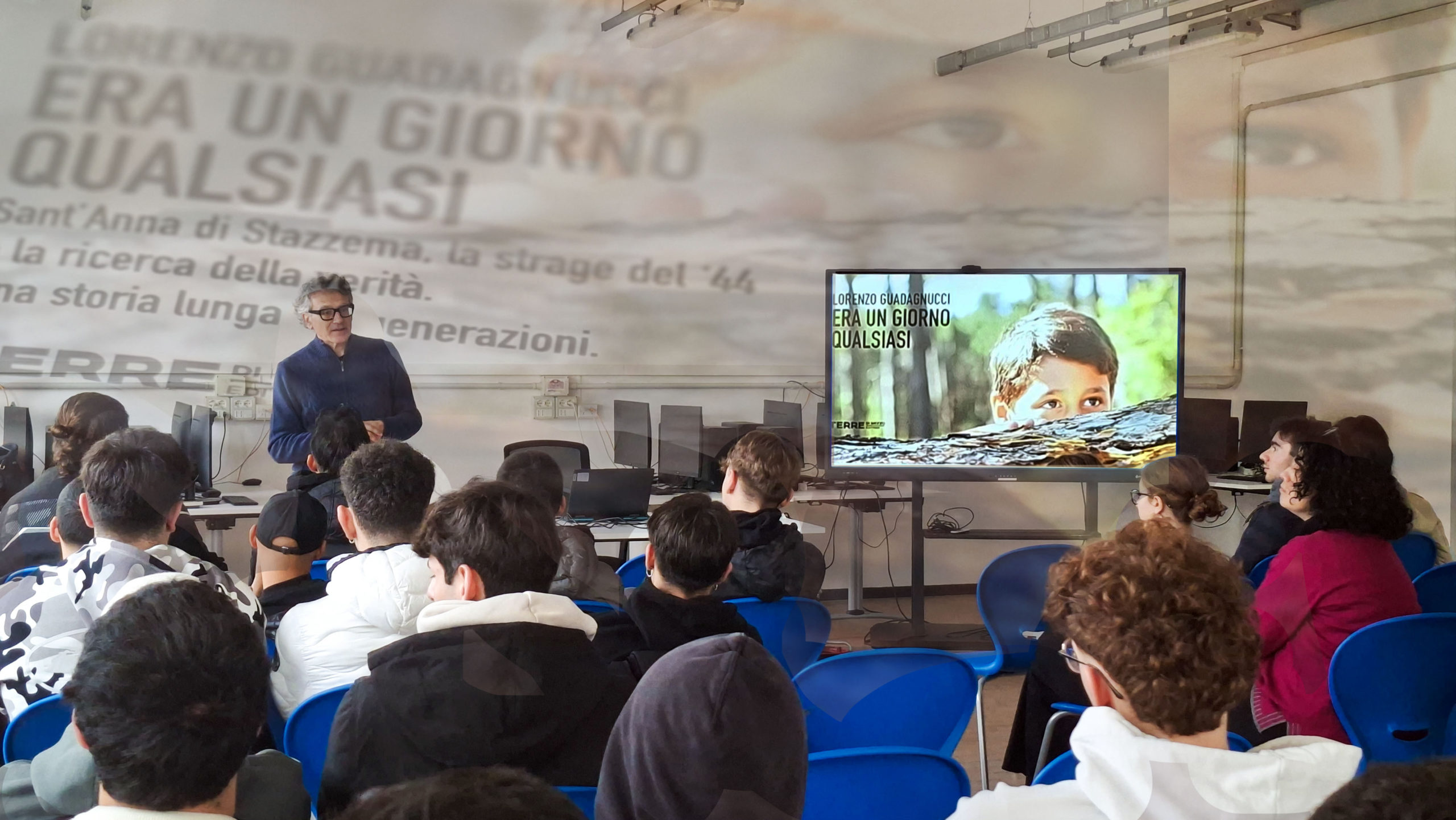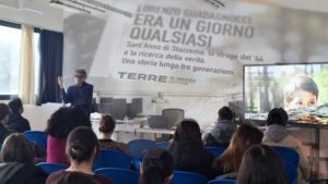 Le classi 4ABL e 5AEL dell’Istituto Sismondi-Pacinotti e del Liceo Artistico Berlinghieri di Pescia hanno incontrato il giornalista e scrittore Lorenzo Guadagnucci, autore di “Era un giorno qualsiasi : Sant’Anna di Stazzema, la strage del ’44 e la ricerca della verità : una storia lunga tre generazioni” (Ed. Terre di Mezzo, 2016).
