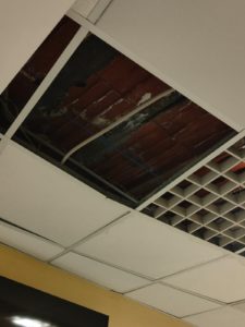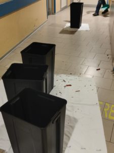 il personale è stato costretto a posizionare bidoni per la raccolta dell’acqua e lenzuoli sui pavimenti, nel tentativo di limitare i danni e prevenire scivolamenti.