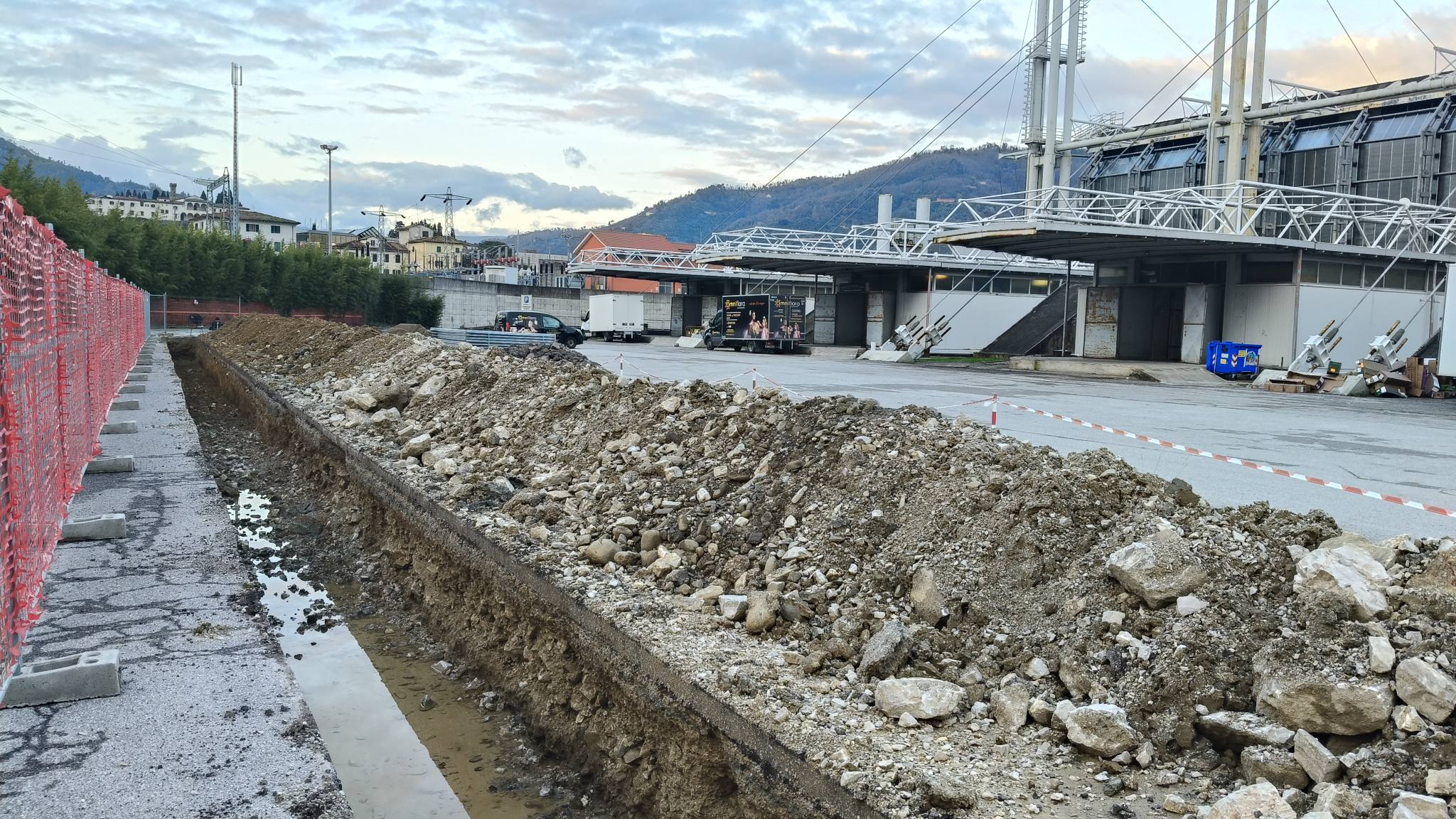 Sono già partiti gli scavi per l’anello antincendio, smontaggio tensostruttura tra la struttura e la stazione ferroviaria e gli scavi per posizionare le pensiline carport per alloggio fotovoltaico.