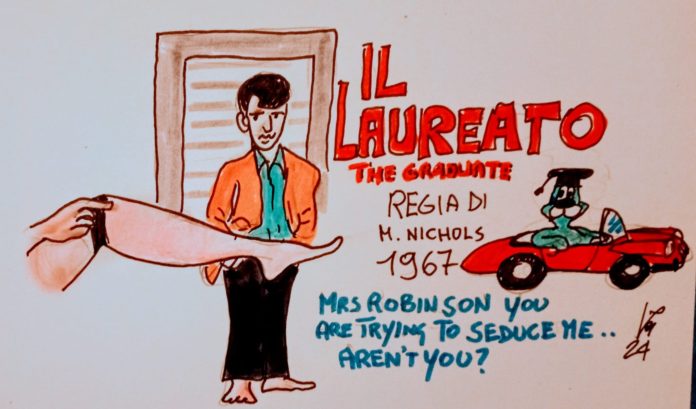 IL LAUREATO ►►► E’ un film statunitense del 1967 intepretato da Dustin Hoffman, Anne Bancroft e una giovane Katharine Ross, le cui interpretazioni valsero a tutti e tre la candidatura al premio Oscar. Il film è celebre per la colonna sonora di Simon & Garfunkel e per la sua rappresentazione della ribellione giovanile contro il conformismo degli adulti negli anni ’60.