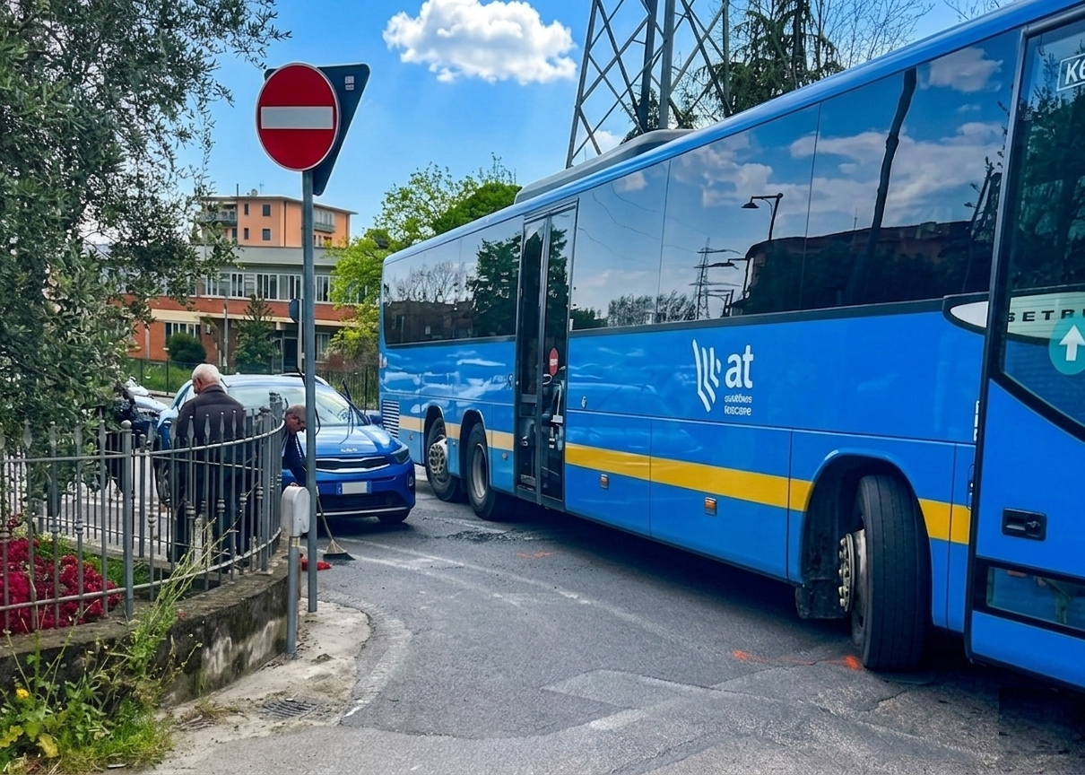 Tanto spavento ma per fortuna nessun ferito nello scontro tra un bus ed un autovettura avvenuto nella tarda mattina di martedì in via Dilezza, nell’intersezione con via Lucchese.