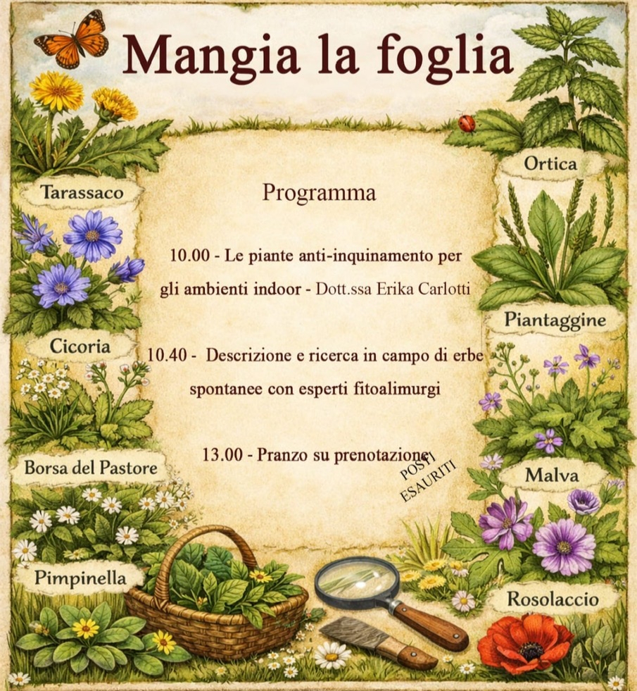 Dopo i saluti della Dirigente Alessia Bechelli, la dottoressa Erika Carlotti, fitoalimurga, spiegherà quali sono le piante anti inquinamento negli ambienti indoor. La mattinata proseguirà con la ricerca in campo di erbe spontanee, con la guida e la collaborazione di esperti fitoalimurgi. Il pranzo, naturalmente con le erbe edibili come regine delle varie portate, è già sold out, a testimonianza del gradimento che le manifestazioni dell’Anzilotti suscitano nei cittadini. Dopo Mangia la foglia grande attesa per l’evento conclusivo dell’anno scolastico in corso: Naturalitas 2026, previsto per i giorni 11 e 12 aprile.