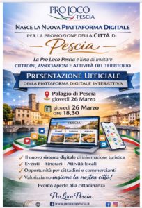 La presentazione ufficiale della piattaforma digitale interattiva è giovedì 26 marzo alle 18:30 in Palagio a Pescia. Si tratta di un nuovo sistema digitale di informazione turistica, eventi, itinerari, attività locali, opportunità per cittadini e commercianti. “Valorizziamo insieme la nostra città”.
