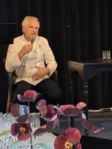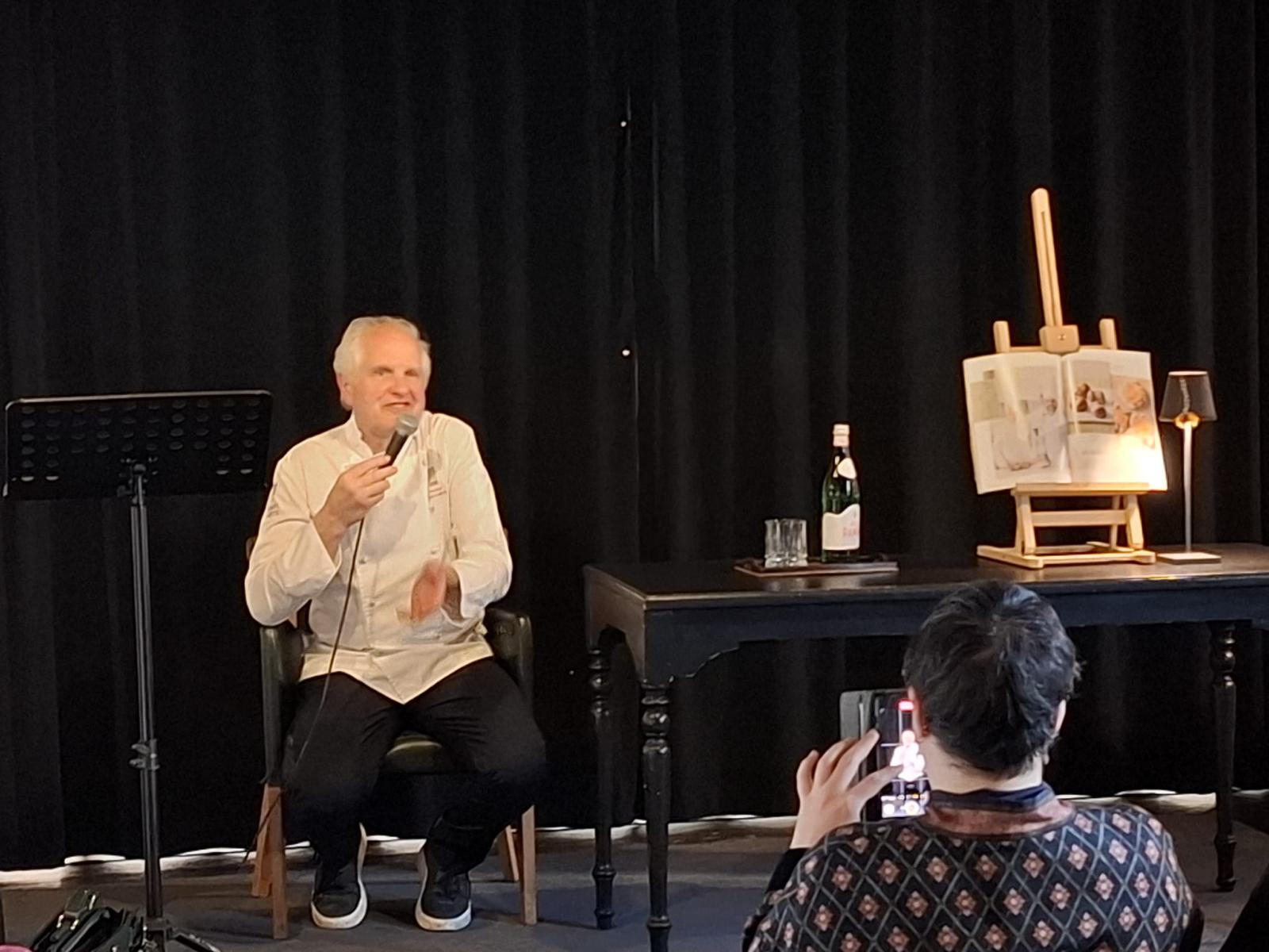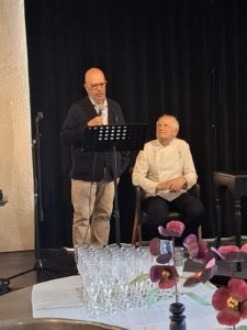 Da Poma, con il presidente dell’Accademia pesciatina, Daniele Bonini, ha parlato di buona cucina e di educazione alimentare. E’ venuta l’acquolina in bocca quando ha presentato e fatto assaggiare una sua rielaborazione delle Pesche di Prato, il dolce composto da due semisfere di pasta brioche, farcite con crema pasticcera che lega le due metà, dal sapore accentuato di una bagna speziata, l’alkermes, con sfumature di vaniglia.