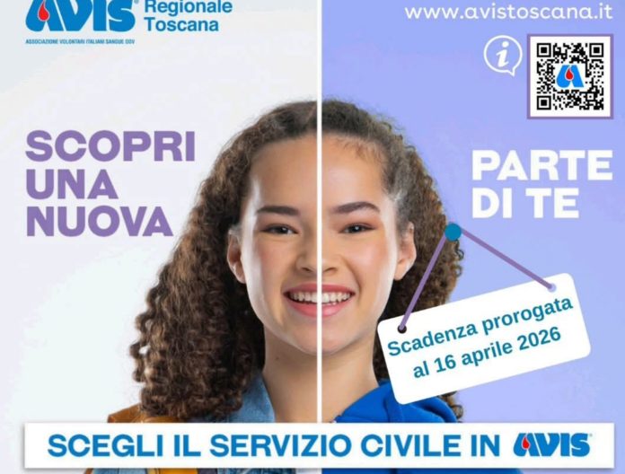 È stata prorogata a domani, 16 aprile alle 14, da presentare ESCLUSIVAMENTE ONLINE tramite SPID o CIE, la scadenza per presentare la candidatura per il bando del Servizio Civile in Avis, nella sede Avis di Pescia.